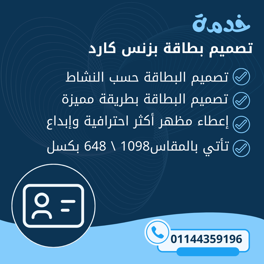 حتى تزيد من فرص نجاحك، لابد من وجود بطاقة بزنس كارد تهتم بتفاصيل متجرك وتعكس احترافية أعمالك أمام عملائك وشركائك.