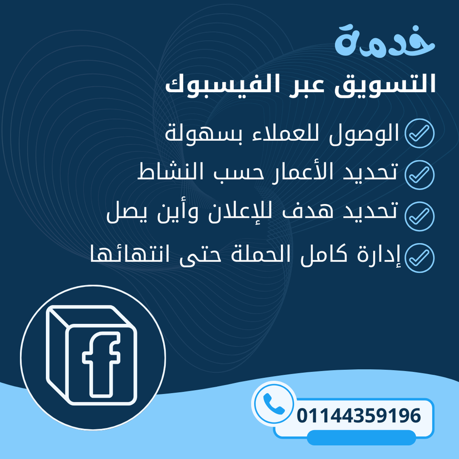 لا تدع الفرصة تفوتك! الآن يمكنك التسويق لمتجرك أو نشاطك التجاري عبر أقوى المنصات الإعلانية فيسبوك، مع استهداف دقيق للفئة المهتمة فعلياً بخدماتك لضمان أفضل عائد على الاستثمار.